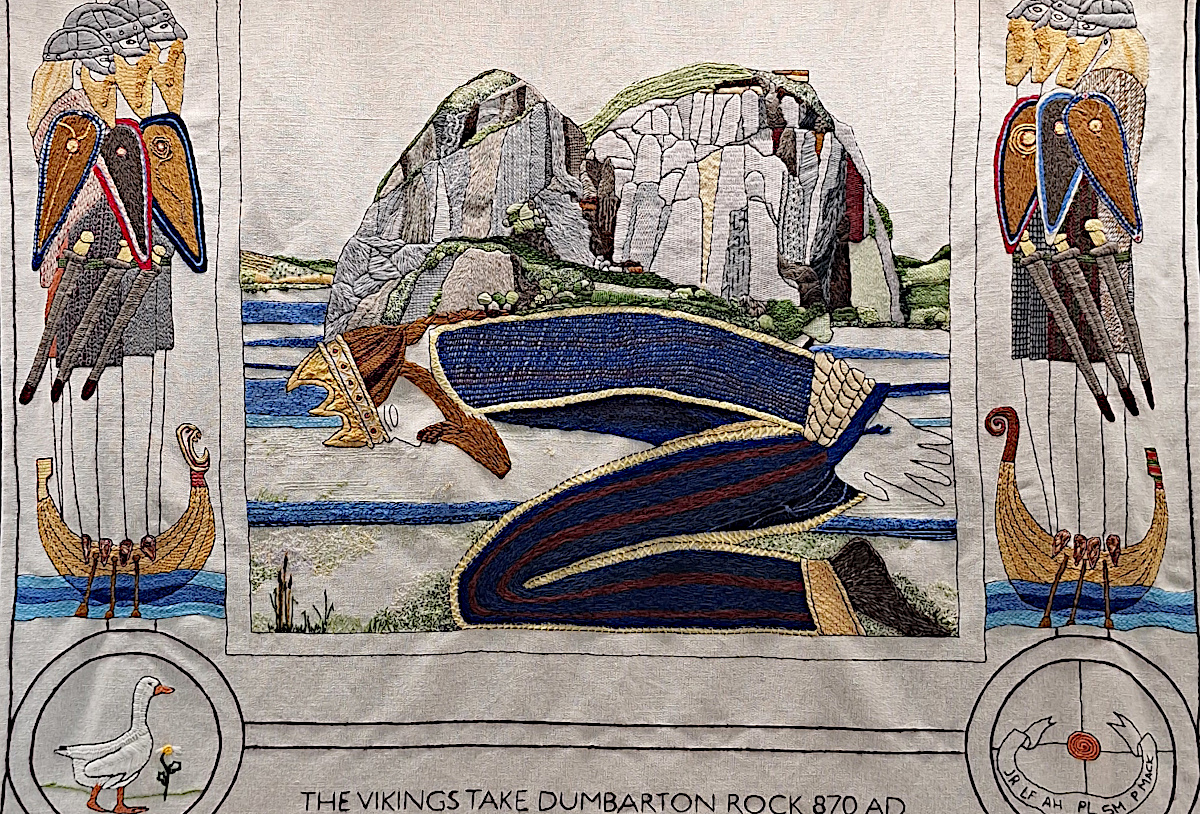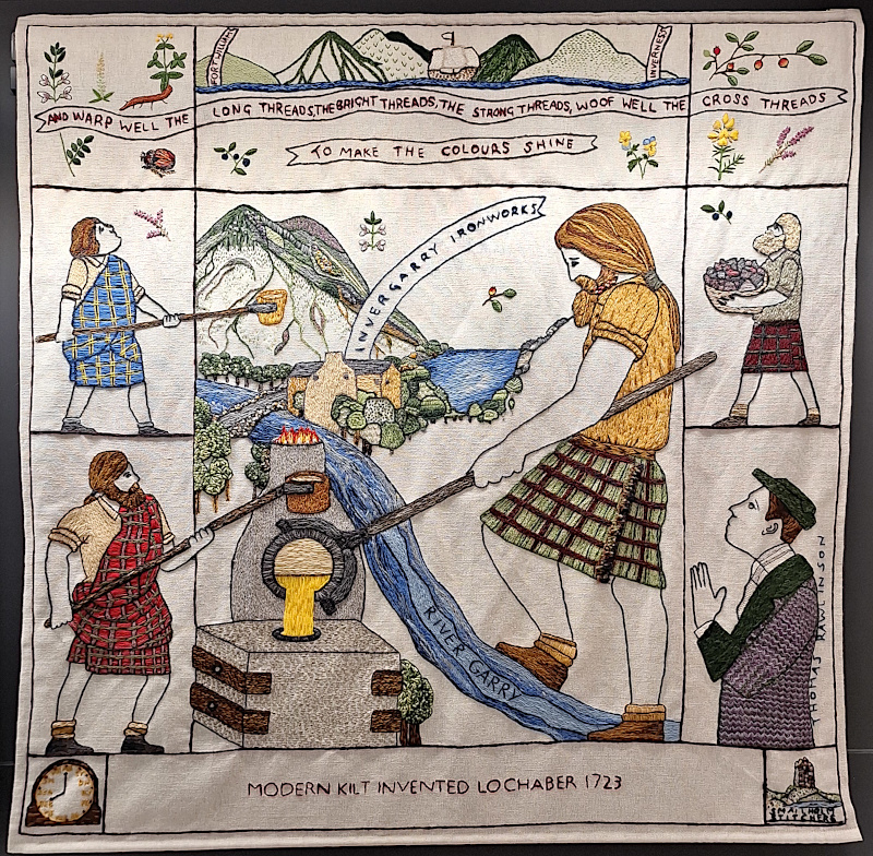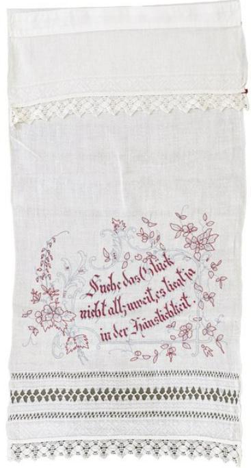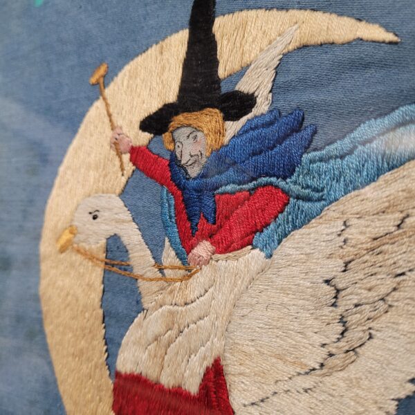 Abb. 7: Mother Goose Embroidery, Museum of Cambridge. Die Stickerei wurde von einem im 1. Weltkrieg verwundeten Soldaten angefertigt. Die Inspiration für das Motiv stammt wahrscheinlich aus dem 1695 veröffentlichten Märchenbuch von Charles Perraut „Histories ou contes du temps passès, avec des moralitès“, das in einer englischen Übersetzung als „Histories or Tales of Past Times told by Mother Goose“ 1729 in England erschien. - https://www.museumofcambridge.org.uk/2024/04/coping-through-stitch-soldiers-recovering-in-hospital-and-the-embroideries-that-passed-the-time/