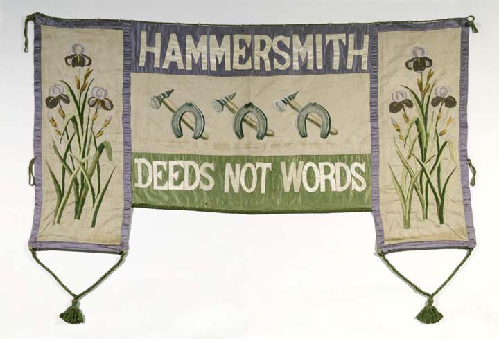 Abb. 11: Banner der Suffragetten der Women's Social and Political Union (WSPU), 1908. - https://commons.wikimedia.org/wiki/File:Suffragette_flag_